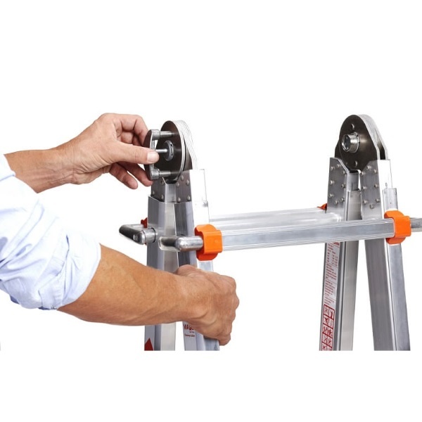 Deze professionele multifunctionele vouwladder van Waku is te gebruiken als ladder en trap in verschillende hoogtes en posities.