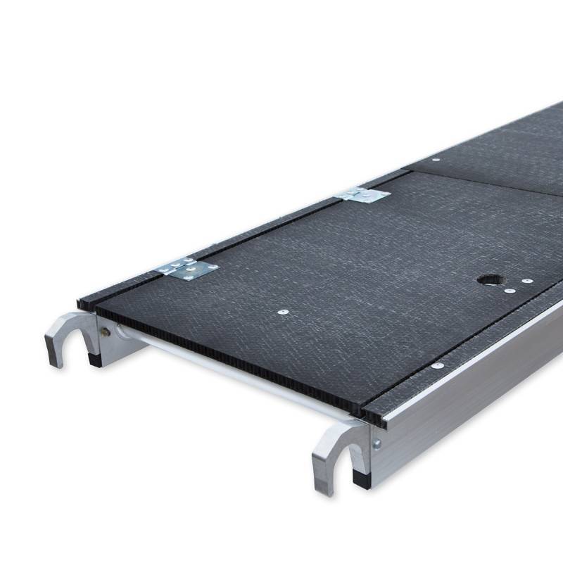 Deze lichtgewicht rolsteigervloer met luik is gemaakt van kunststof carbondeck. Het platform is 305 cm lang, 60 cm breed en weegt slechts 17 kg. Een rolsteiger platform van carbondeck is zo’n 30% lichter dan een steigervloer van hout. Met lichtgewicht platformen is een steiger sneller op te bouwen en gemakkelijker te verplaatsen. Deze platformen zijn vrijwel onverwoestbaar en hebben een hoge belastbaarheid van 350 kg per m². Door het luik in de vloer kunt u veilig binnendoor klimmen, aan de binnenkant van de steiger. De steigervloeren van Euroscaffold zijn uitwisselbaar met andere merken, en voldoen aan de Nederlandse en Europese wetgeving.