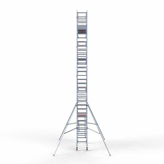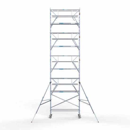 Euroscaffold rolsteiger met dubbele voorloopleuning en 10,2 meter werkhoogte.