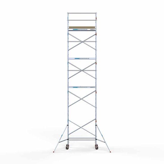 De meegeleverde rolsteiger beschikt over een werkhoogte van 10,2 meter werkhoogte. Een rolsteiger van 10 meter is ideaal voor installatiebedrijven, schildersbedrijven en andere professionals. De rolsteiger voldoet aan alle verplichte veiligheidseisen in Nederland en Europa en beschikt dan ook over een TรV certificaat. De rolsteiger beschikt over een breedte van 75 cm en is ideaal in gebruik voor steegjes en smalle paden. De lengte van de steiger bedraagt 190 cm, dit betekent dat u met meerdere personen op het deck kunt werken of bijvoorbeeld grote oppervlakten in รฉรฉn keer kunt bewerken, zonder de steiger te verplaatsen.